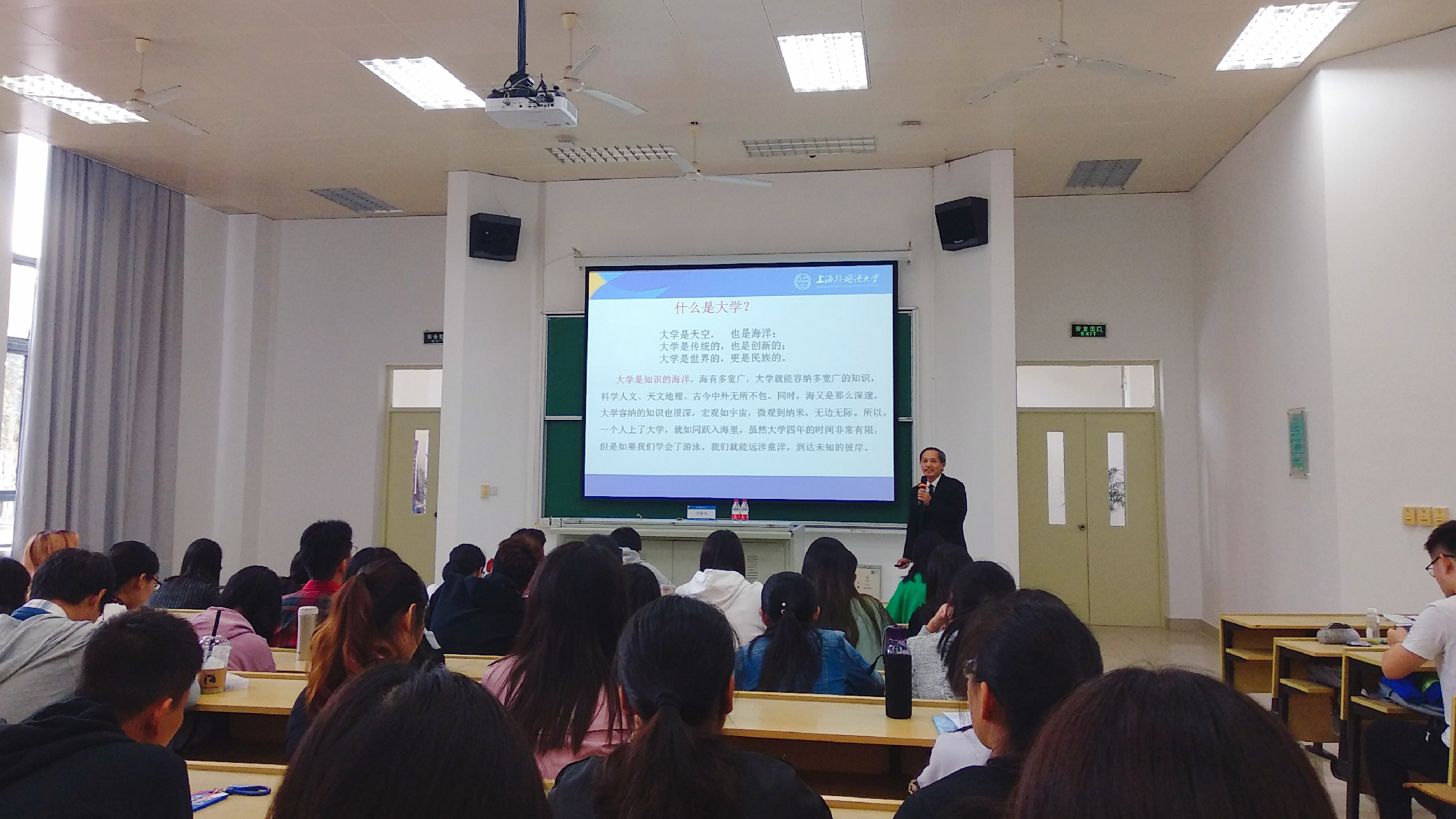 王祥兴教授从自己的大学经历出发,回顾了48年前自己的求学之路,他从 “为什么要上大学”的问题出发,带领同学们认识大学,认识自己。王教授提到,上大学首先是为了学习知识,充实自己,但人生中学到的知识远不止大学里的知识。他强调,大学中要学的是技能,是解决问题的能力,但最重要的是学做人,做一个自信的、尊重别人的,具有社会责任感的人。他谈到,大学里,要树立正确的人生观、价值观,要有社会责任感,人生的奋斗不仅仅为自己,更是为社会、为国家。