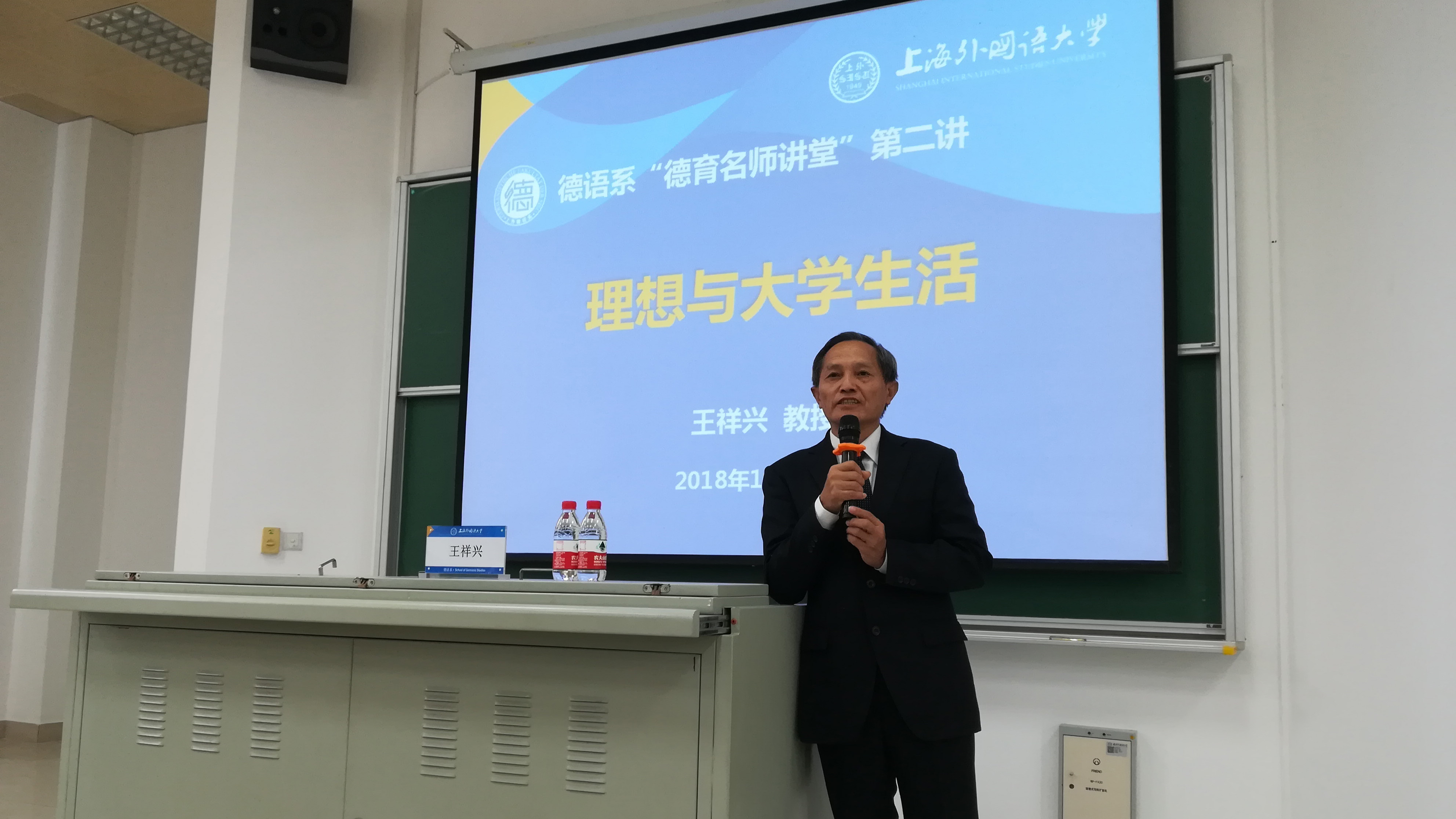 10月12日下午,德语系“德育名师讲堂”第二讲——理想与大学生活在松江校区三教楼154教室成功举办。本次讲座邀请到我校学术委员会委员、校本科教学督导组组长王祥兴教授担纲主讲,德语系全体学生党员、入党积极分子及全体大一新生参加了讲座。讲座由德语系党总支副书记田力娜主持。