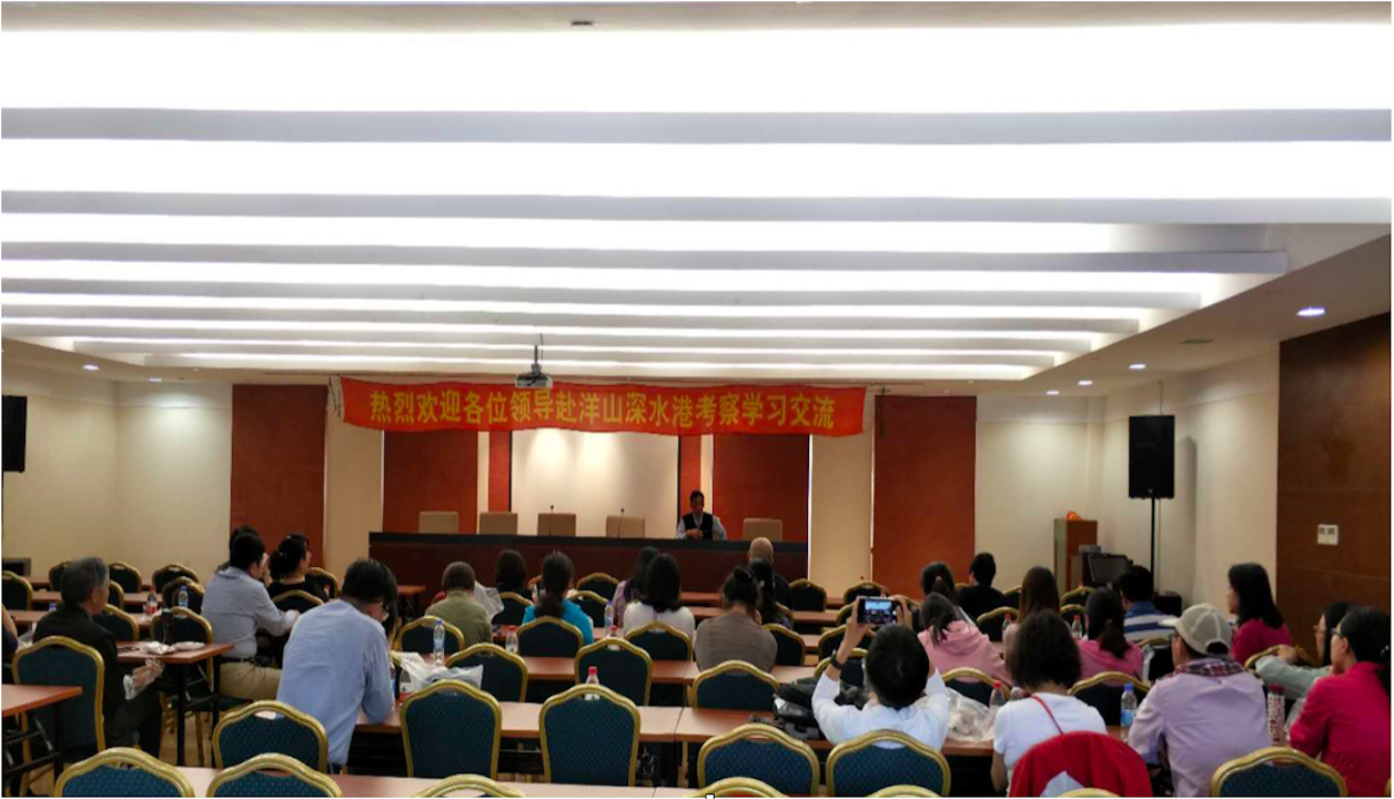 到达洋山港后,大家首先聆听了由教工支部邀请来的洋山深水港退休职工、原办公室主任刘老师讲授的专题党课。刘主任生动形象地介绍了洋山深水港建设的历史背景、发展历程、现状以及重大战略意义。他指出,洋山深水港作为中国首个在微小岛上建设的港口,是中国发展上海自贸区、建设海洋强国的依仗,对我国积极参与国际经济竞争,增强国家综合竞争力,具有十分重大的战略意义。刘主任还强调了新建立的洋山深水港四期“无人自动化码头”,自动化码头最大的突破是给中国制造装上了“中国芯”,从设备到智能控制系统均为中国研发制造,完美实现设备与智能系统的完美融合,让国际航运市场看到中国企业在系统研发方面的潜力。作为深水港建设的亲历者,刘老师深情地说:在孤岛上建成规模如此大的现代化港口,在外国友人眼里是一件不可思议的事。但是在中国共产党的领导和英明决策下,我们就能实现这不可思议的事。老师们深受感染,情不自禁地全体鼓掌,致敬伟大的党,也致敬敢闯敢试、矢志创新精神的洋山港建设者们!