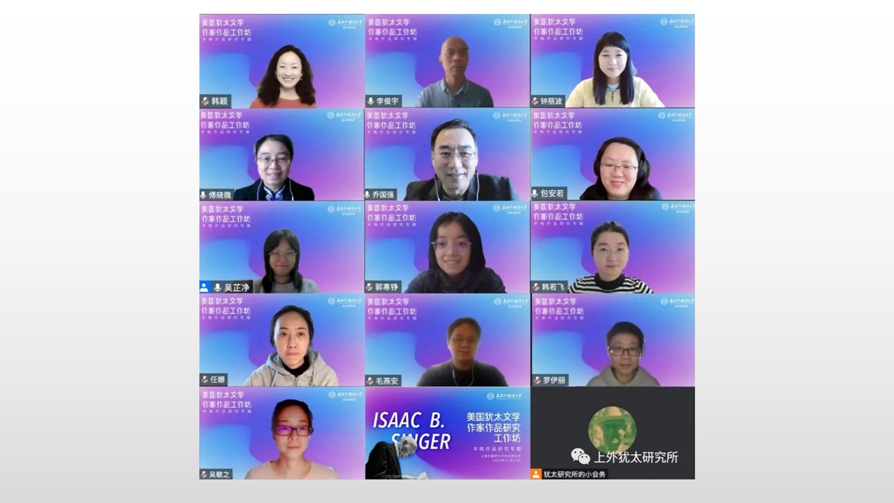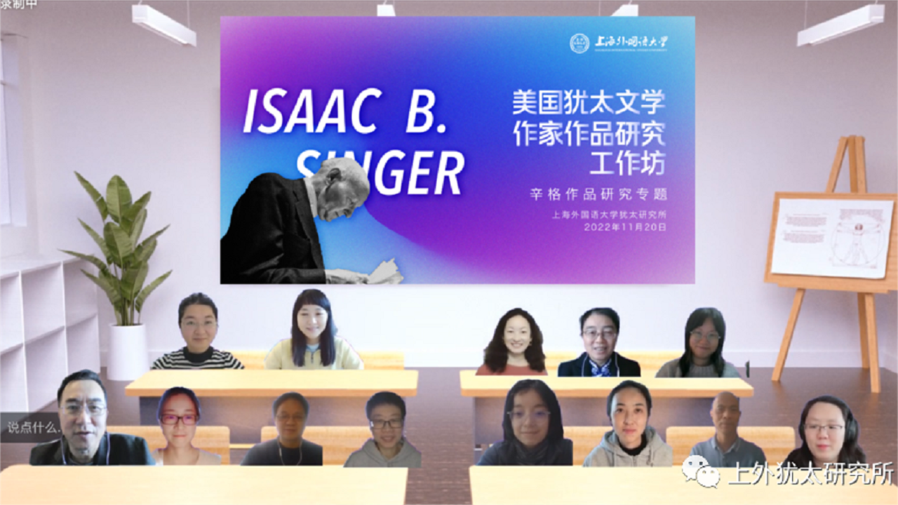 2022年11月20日下午,由上外犹太研究所主办的首场“犹太文学作家作品研究工作坊”——“辛格作品研究专题”线上会议顺利举行。本次活动是一次小型的专题研讨会,以学术沙龙的方式展开自由的讨论。会议由乔国强教授主持,四川外国语大学的傅晓微教授,中央美术学院的韩颖副教授,宁德师范学院的李俊宇副教授,美国哥伦比亚大学的包安若博士应邀参加,为上外师生带来了辛格作品研究相关的主题发言。师生们齐聚云端教室,进行了深入、充分的学术分享与交流。