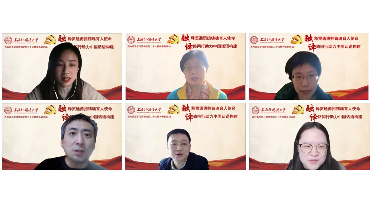 本次主题党日活动从“融”和“译”两个角度,以党的二十大报告提出的“办好人民满意的教育”和“增强中华文明传播力影响力”为切入点,邀请参与“理解当代中国”西葡语系列教材编写教学工作和参与中国共产党国际形象网宣片西葡意版本译配工作的多名师生党员代表结合工作经历、思想感悟展开交流分享。