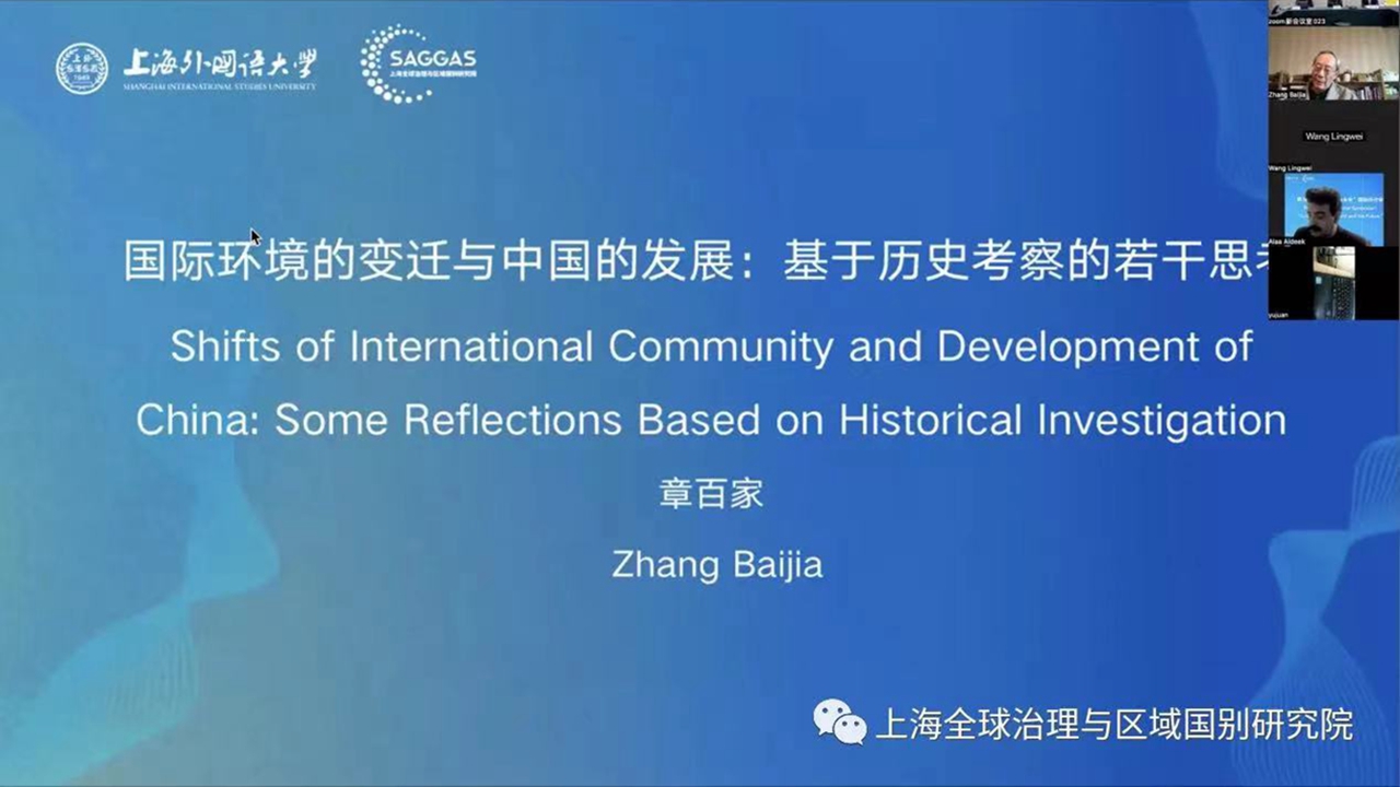 中共中央党史研究室原副主任章百家在发言中指出,当前国际形势处于大变革时代、中国处于发展的关键时期,都充满不确定性,中国和外部世界的互动不仅影响中国的未来,也影响世界的未来。他从历史考察的角度,对古代、二十世纪中国在殖民地半殖民地的民族解放运动和美苏冷战、改革开放和全球化三个阶段的中国与外部世界的互动行了分析,强调中国对绿色发展、可持续发展,以及“双循环”的主张是解决当前中国和世界关系的重要考量,世界的和平发展有赖于各国合作。