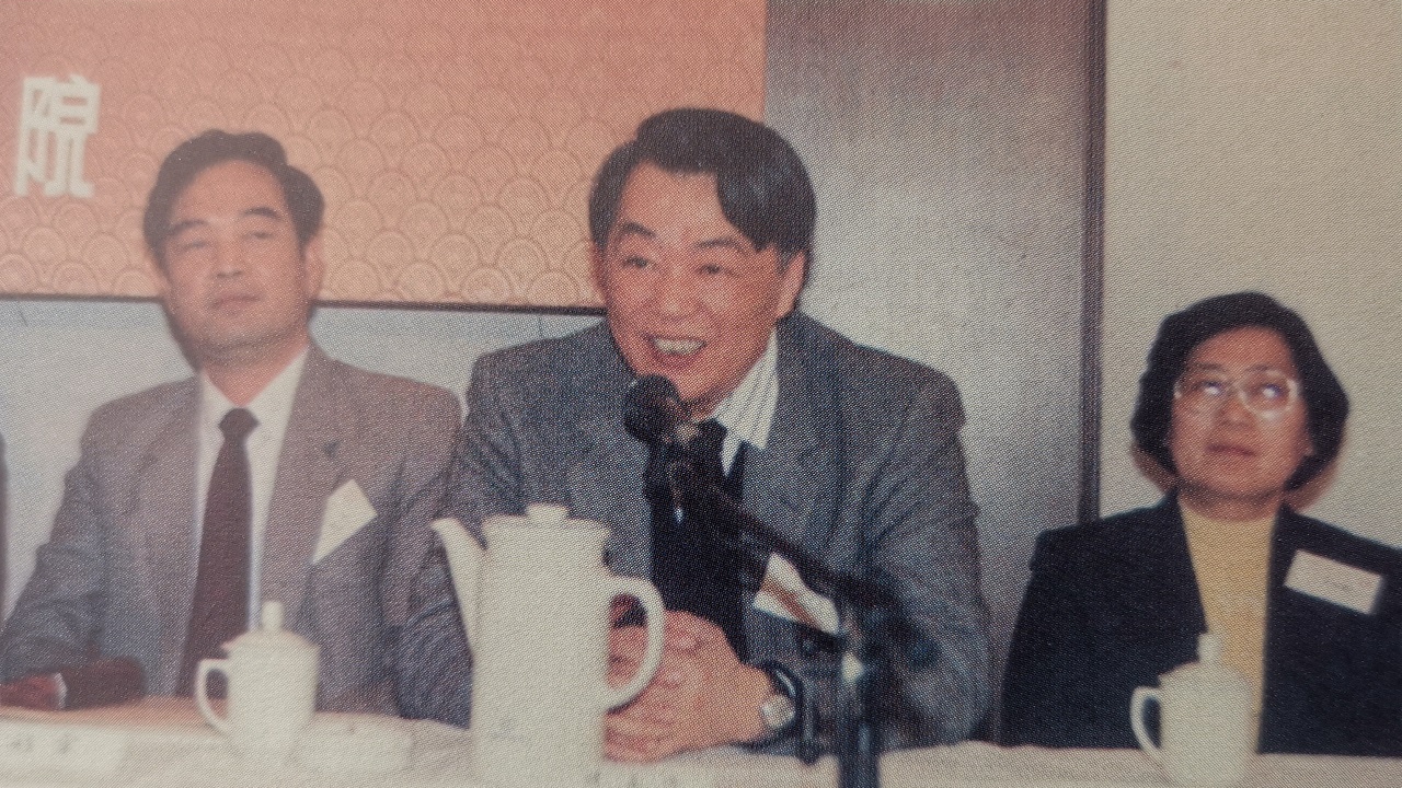 1991年胡孟浩在“中国文化与世界国际学术会”上讲话(右为时任校党委书记朱丽云) 【摄影 | 】
