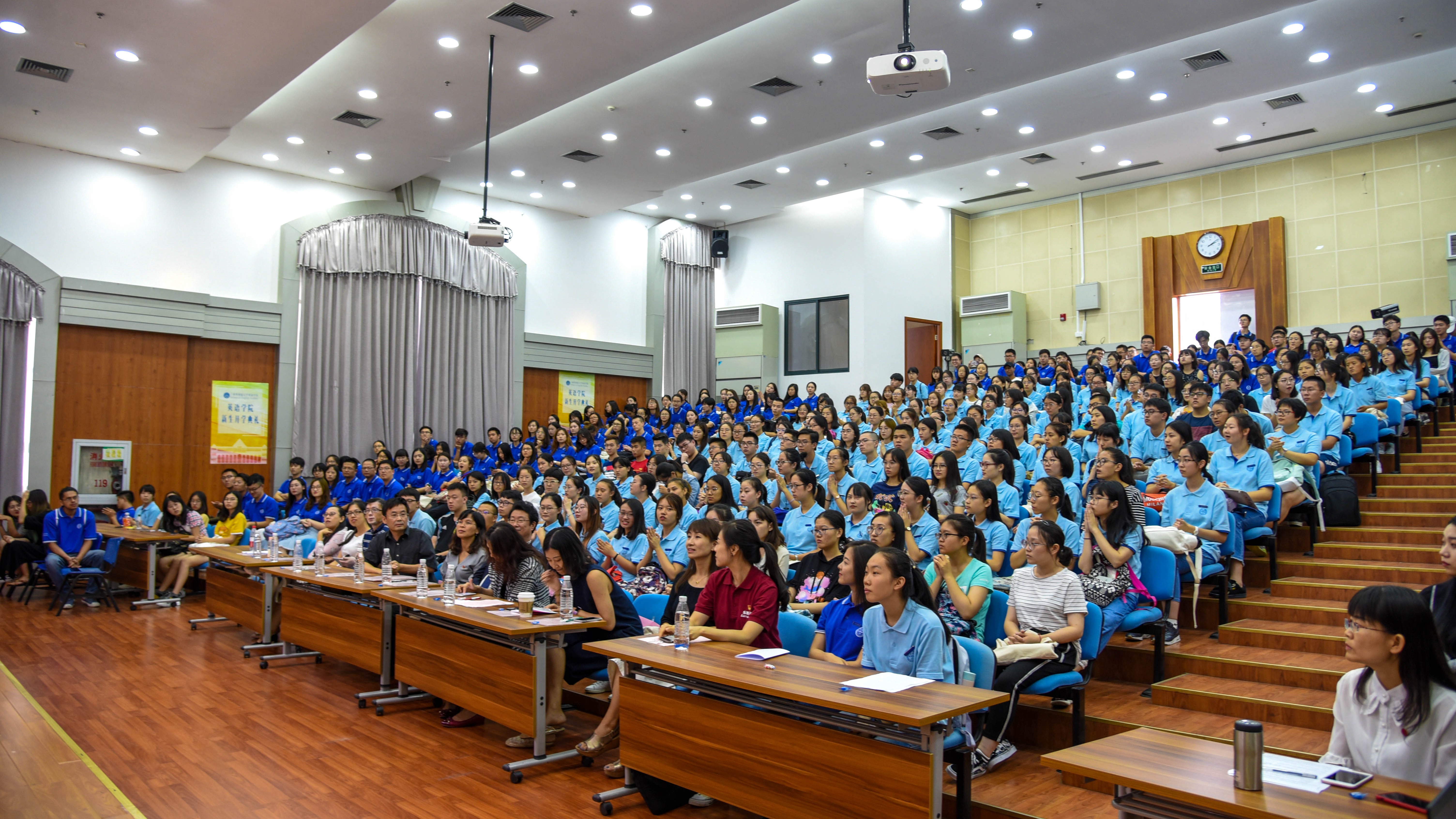 学生、教师代表和院长的精彩发言和致辞,将学院开学典礼氛围推向了高潮,更让2018级新生对即将开始的英华生活充满了憧憬。在同学们热烈的掌声中,2018级新生开学典礼圆满结束!